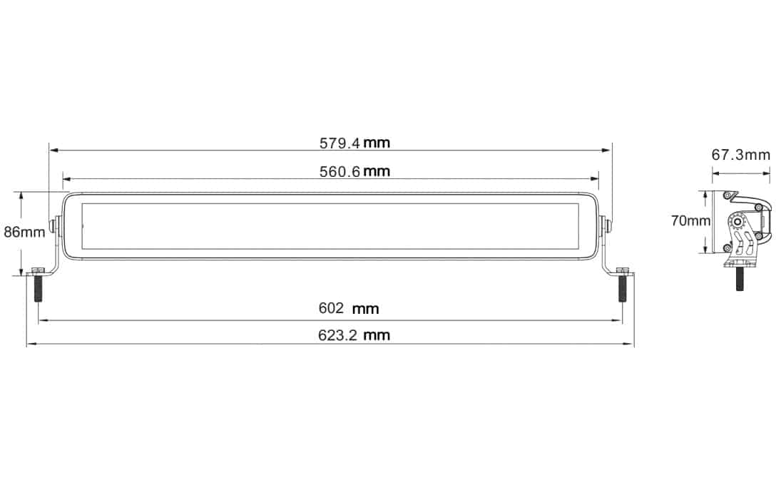 | Dimensions | 67mm D x 579mm L x 70mm H |