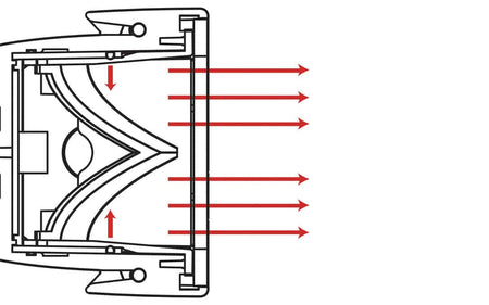 | The Jet Black Series features a sleek new edgeless design to reduce snow and ice build up as well as reduce wind resistance and noise. Hooded dark reflectors reduce glare and direct light exactly to where it’s needed. | |