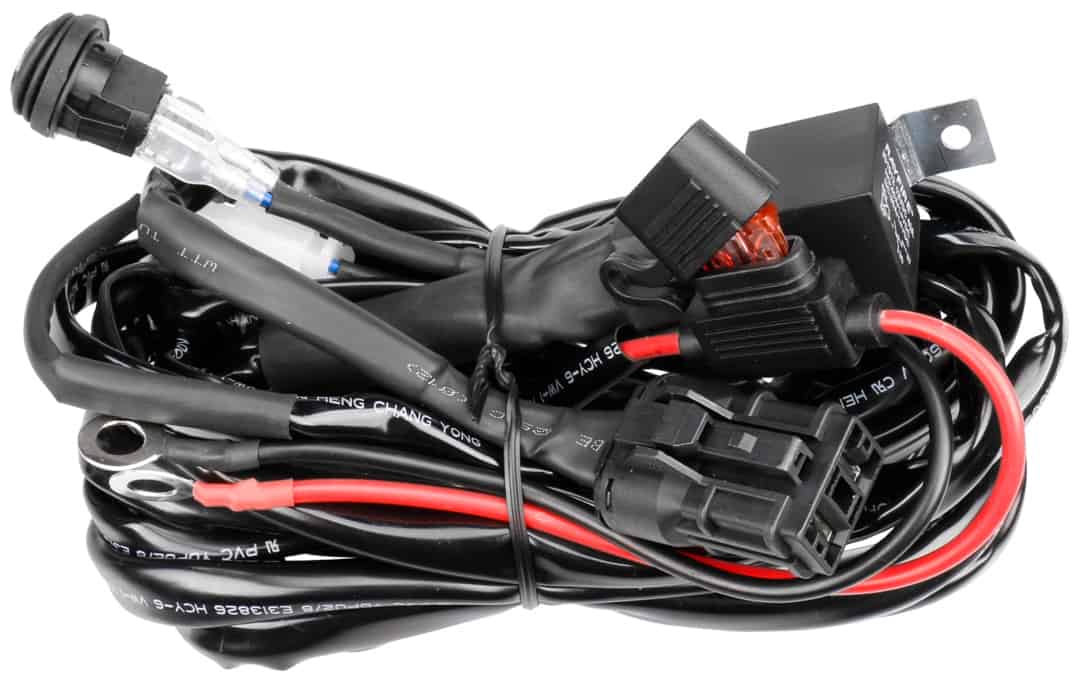 | Includes Wiring Harness (Sealed Plug & Play Deutsch Plug Connector, Override Switch, 40 Amp Relay, 30 Amp Fuse, Fuse Holder, 20' of wire) | |