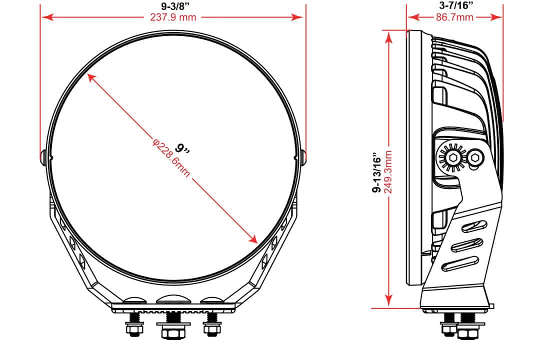 Jet Black Series 9” Round ECE/EMARK Driving Lights (Pair)